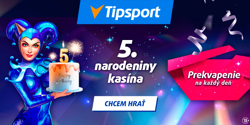 Tipsport kasíno oslavuje 5. narodeniny a prináša free spiny