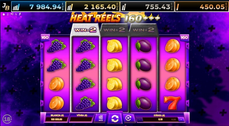 Na záver sa pozrieme na hru Heat Reels 160+++, ktorý sa, ako tušíte, hrá na 160 výherných líniach. Opäť ide o päťvalcový slot a výhru vám môžu priniesť už tri rovnaké symboly. Na jedno zatočenie si môžete staviť už od 10 centov, najviac však 500 eur.