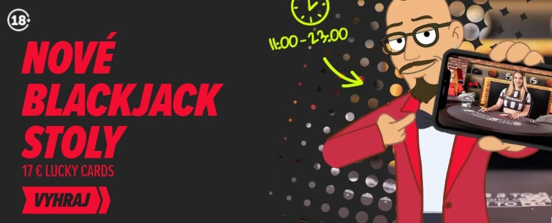 Ak sa radi zabávate so živými krupiérmi v DOXXbete, môžete sa tešiť na herné novinky. DOXXbet totiž rozšíril svoje štúdio, z ktorého streamuje live hru v kasíne, a pridal dva nové stoly. Na nich si môžete každý deň od 11:00 do 23:00 zahrať novinky v podobe Grande Club Blackjack alebo Club Blackjack. No a aktuálne na týchto novinkách prebieha akcia s názvom Lucky Cards, v ktorej môžete získať bonus až do 17 eur.