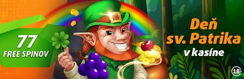 V utorok 17. marca sa po celom svete oslavuje Deň sv. Patrika, patróna všetkých Írov. No a jeden z leprechaunov priniesol do Tipsport online kasína nádielku 77 free spinov. Rozdelené sú na dva balíky, prvý je tvorený 60 free spinmi a druhý balík tvorí 17 voľných zatočení.